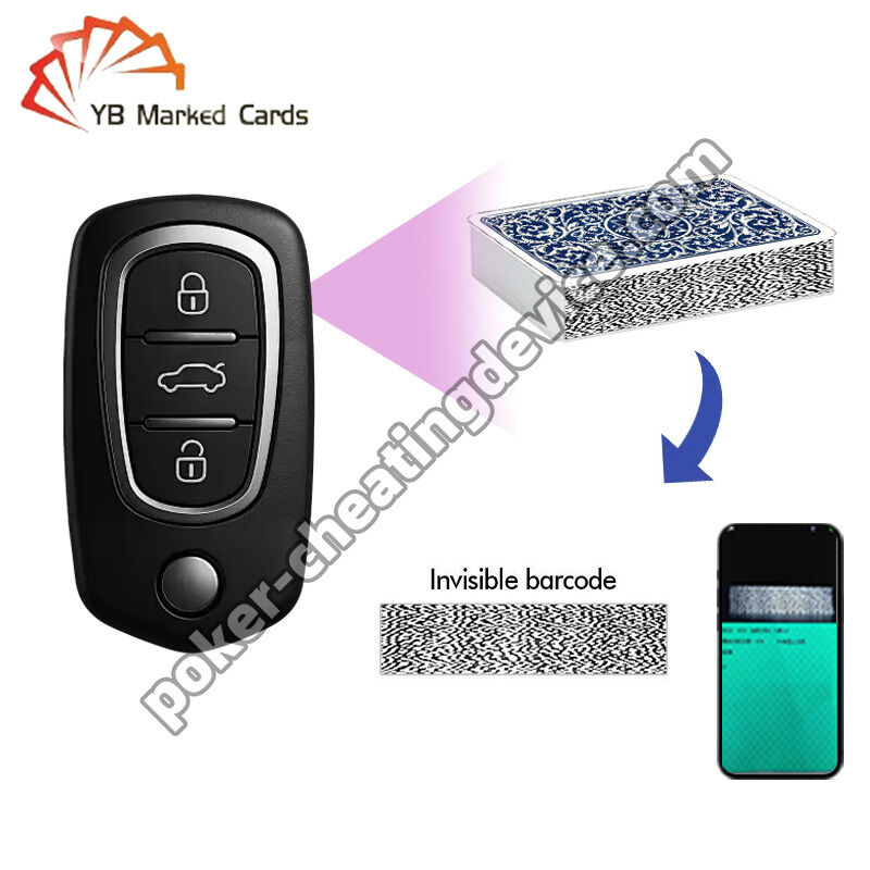 El escáner de cámara espía inalámbrica oculta con llave de coche es una herramienta discreta y avanzada diseñada para ayudarte a mantenerte a la vanguardia en el juego. Cuando los analizadores de póquer no se pueden colocar sobre la mesa, este dispositivo inteligente ofrece una solución perfecta. Escanea eficazmente cartas marcadas con códigos de barras de 25 a 40 cm, envía los datos a su analizador de póquer para su análisis y le entrega los resultados directamente a través de un auricular discreto.